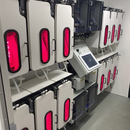 해조류 바이오리액터(SBR)는 온도, pH, 빛 등 중요한 배양 파라미터를 쉽게 제어합니다. 데이터 그래프 표시 기능을 통해 실시간으로 정보를 파악하고 성장 최적화를 위한 의사 결정을 할 수 있습니다. 모듈식 시스템을 통해 제어된 조건에서 해조류 종묘를 배양할 수 있어 해조류 양식의 최적화가 가속화됩니다. 또한, 이러한 시스템은 품종 선택, 선택 육종, 교배 등 유전적 개량을 위한 조건을 최적화하는 데 도움을 줍니다.